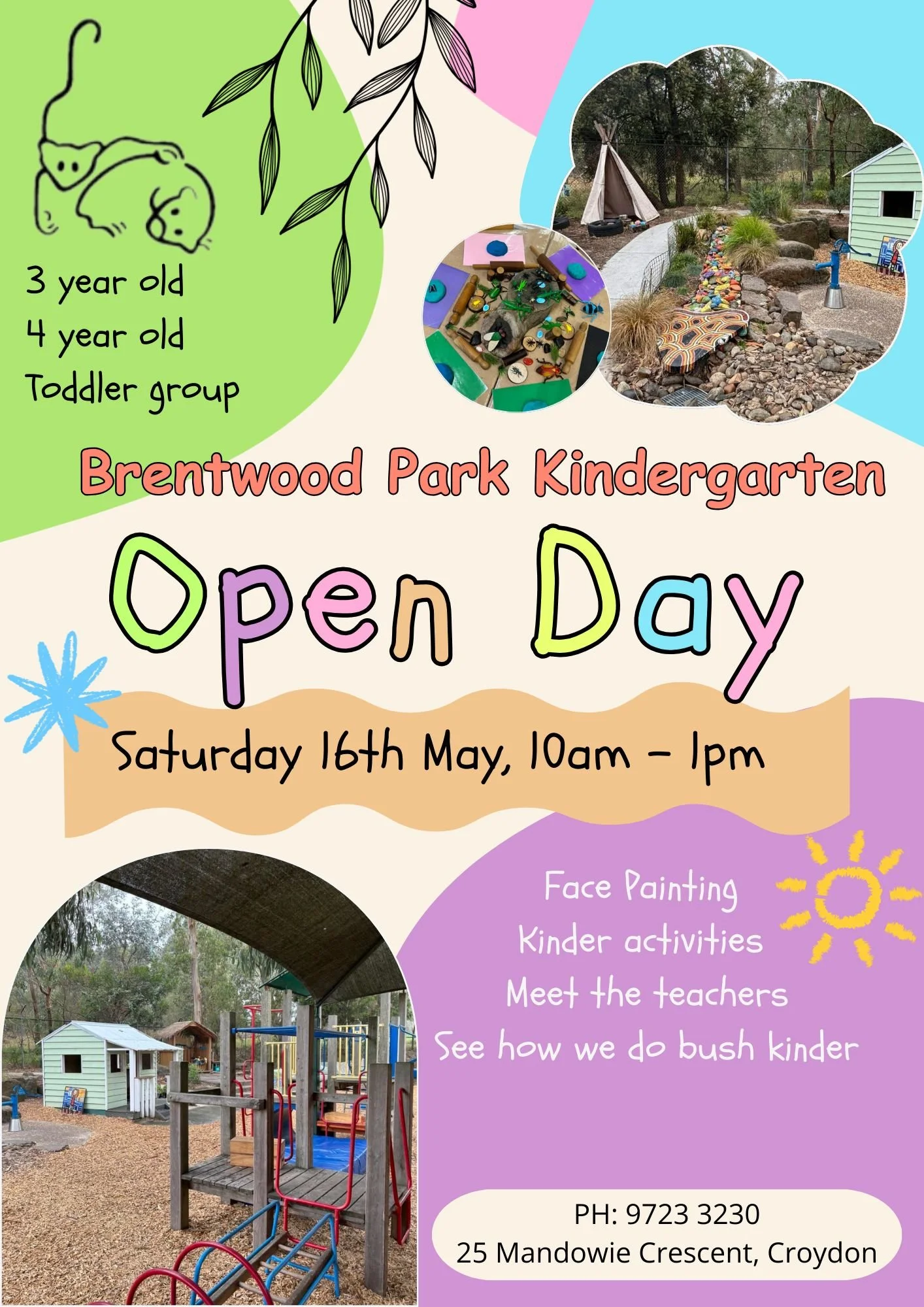 Join us for our Open Day, where you will get the chance to meet our teachers, see how we run bush kinder, enjoy kinder activities, and have face painting!